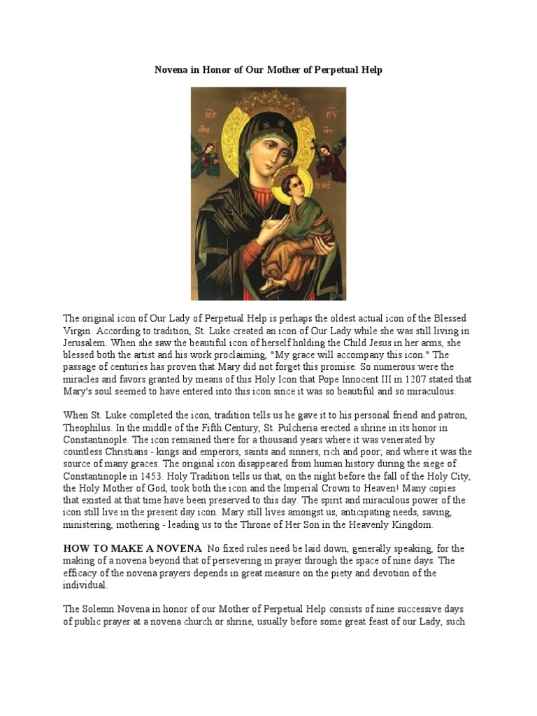 Perpetual Help Novena - Free download as Word Doc doc docx PDF File pdf Text File. OF PERPETUAL HELP. Mother of perpetual help we choose you as queen of our homes.